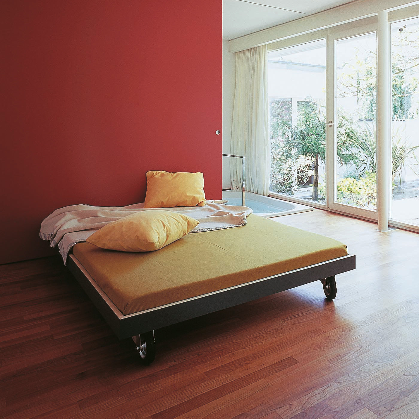 das bett auf rollen vereint ruhe und mobilität. es ist schnell aufzubauen und zu bewegen. die rollen mit bremsen gewähren ihnen einen sicheren stand, sobald sie die optimale ausrichtung im raum gefunden haben.